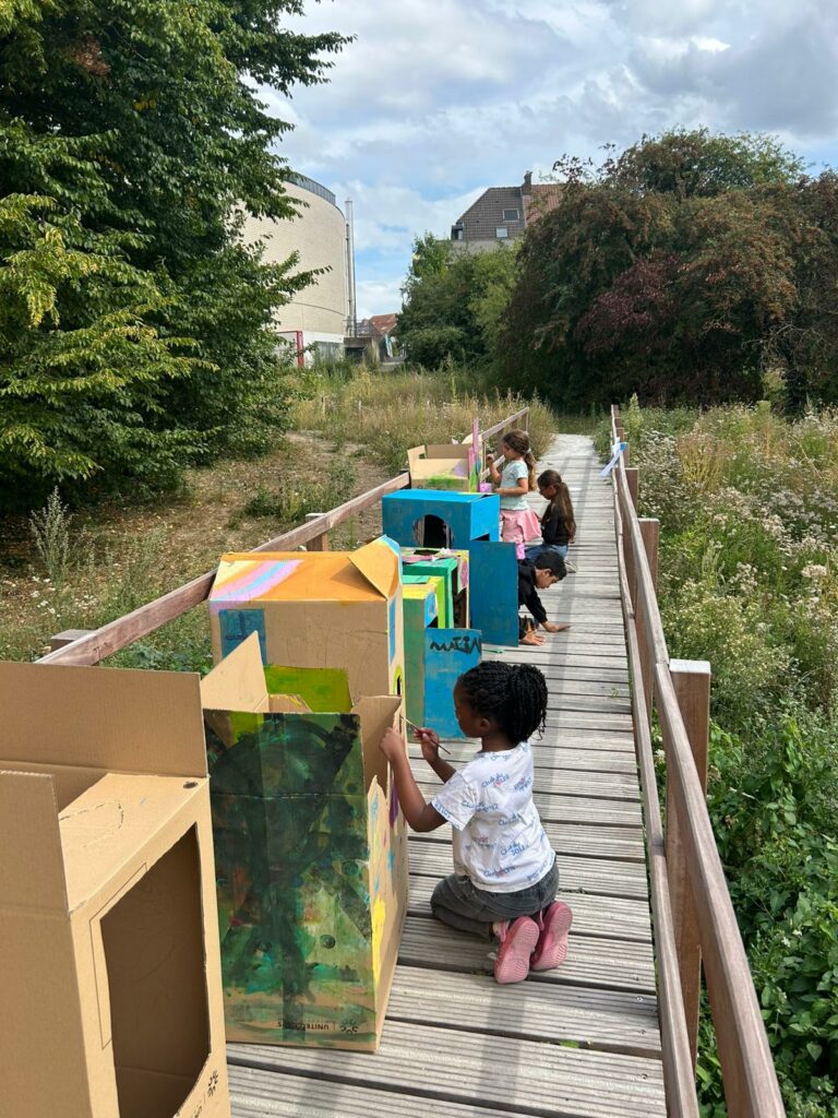 Un moment fort a été le stage Rakonton, organisé avec la bibliothèque Sésame à Schaerbeek. Les enfants se sont plongés dans l’imaginaire et la création — théâtre, argile, peinture, marionnettes, musique et balades dans le parc Josaphat. Leur enthousiasme a illustré la force de notre approche artistique, qui les motivait chaque jour à revenir avec plaisir.