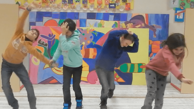 Vertrekkend vanuit fragmenten van (spook)verhalen werken we met de kinderen geïmproviseerde choreografieën uit waarin mensen, stemmen en voorwerpen bewegen en reageren op elkaar. Dat doen we aan de hand van , een methode uit de dans- en theaterwereld. Daarbij veel aandacht voor herhaling, versnelling en vertraging en onderlinge interactie.