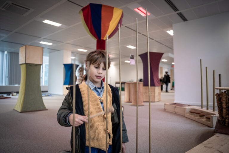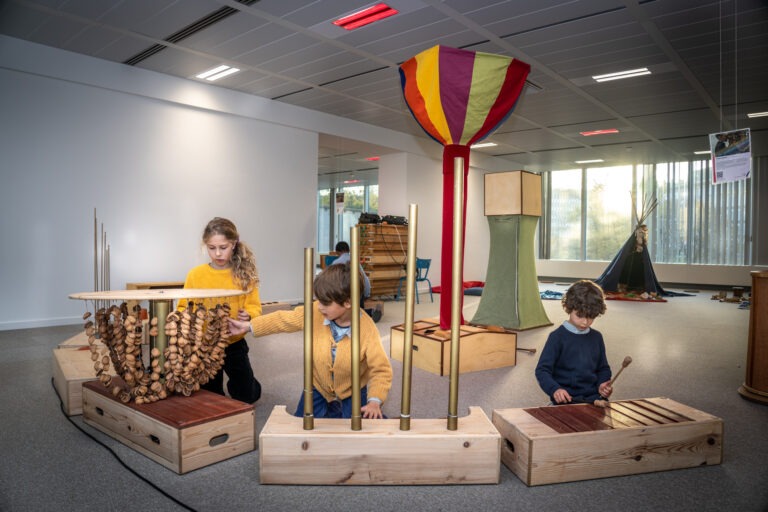 Wanneer de kinderen binnenkomen, zien ze enkel de muziekinstrumenten en een zevental fraai vormgegeven objecten waarvan de functie niet dadelijk duidelijk is. De begeleid-st-er vertelt hen dat ze samen op verhaal gaan.