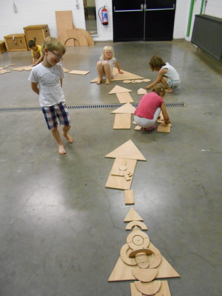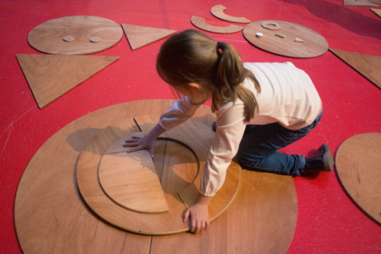 OPEN Vormidable est un moment de jeu libre où enfants, jeunes et adultes s’immergent dans un univers géométrique rempli d’imagination. Avec de simples formes en bois – cercles, demi-lunes, triangles et carrés – les participant·e·s créent des compositions colorées, des figures fantaisistes et des paysages imaginaires.